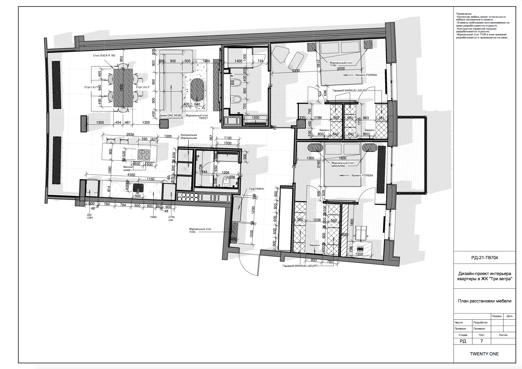 • Обмерный план • План демонтажа стен и перегородок; ₪ • План возводимых стен и перегородок; ₪ • План предчистовой отделки; • План чистовой отделки; • План расстановки мебели; • План полов с указанием типа напольных покрытий и площадей; • План размещения подогрева пола с привязкой регулятора; ₪ • Схема расположения плинтусов; ₪ • План размещения сантехнического оборудования с привязкой выпусков и водорозеток; • Планы потолков с указанием типа используемого материала, отдельных узлов и сечений; • План размещения осветительных приборов, привязка выпусков освещения; • План размещения розеток, выключателей и электровыводов; • План размещения осветительных приборов, с учетом групп включения; • План размещения кондиционеров; ₪ • Схема расположения радиаторов и конвекторов; • Схема заполнения оконных проёмов и открывания окон; • Схема заполнения дверных проёмов и открывания дверей; • Листы с развёртками по всем проектируемым помещениям; • Листы с визуализациями по всем проектируемым помещениям; • Листы с расстановкой мебели по каждому помещению с указанием артикулов; • Листы с эскизными чертежами заказной мебели; ₪ • Ведомость отделочных материалов; • Ведомость осветительного оборудования; • Ведомость розеток, выключателей, переключателей.